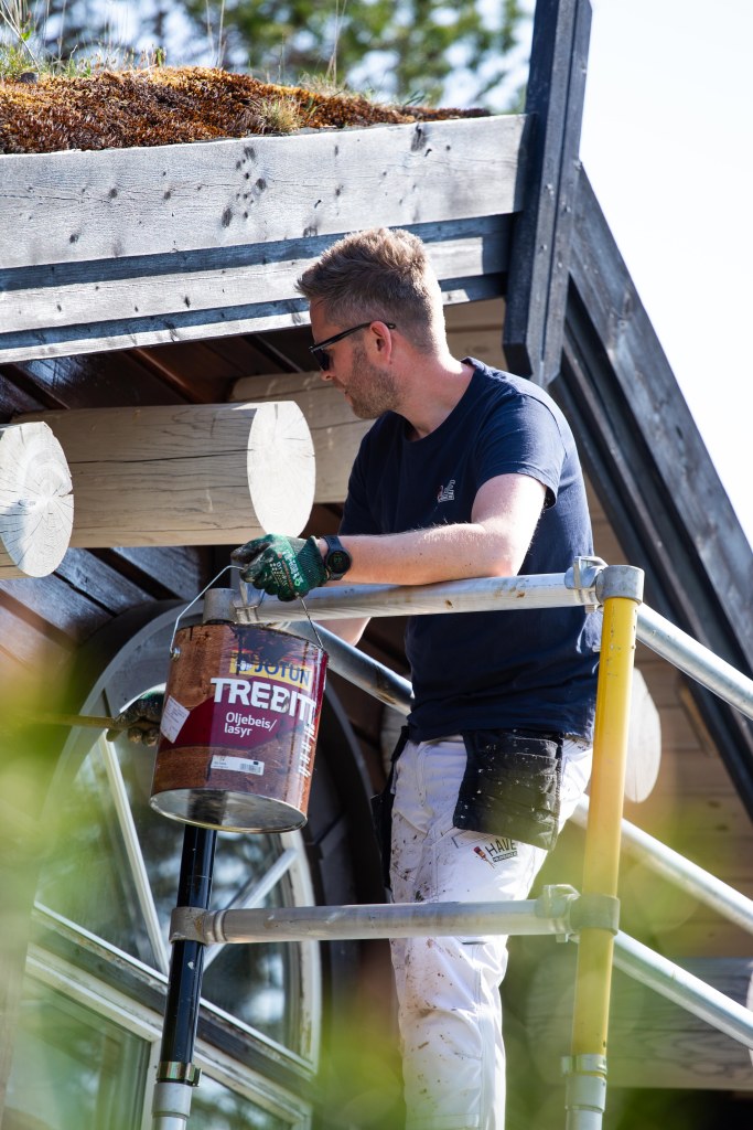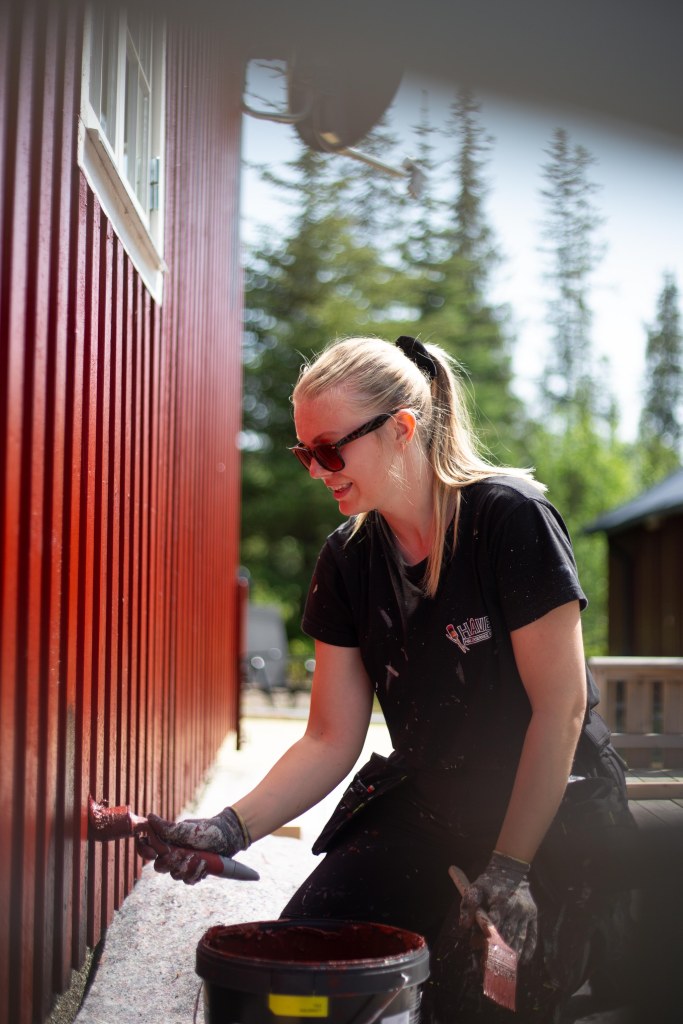 - Underlagets forberedelse: Før du maler utvendige overflater, er det viktig å forberede underlaget riktig. Rengjør overflaten ved å fjerne skitt, mugg, malingsskall og annen løs maling. Eventuelle skader eller sprekker bør repareres ved å fylle dem med passende fugemasse eller sparkelmasse. Overflaten kan også trenge å bli vasket, skrapet eller slipt for å sikre godt vedheft for malingen.